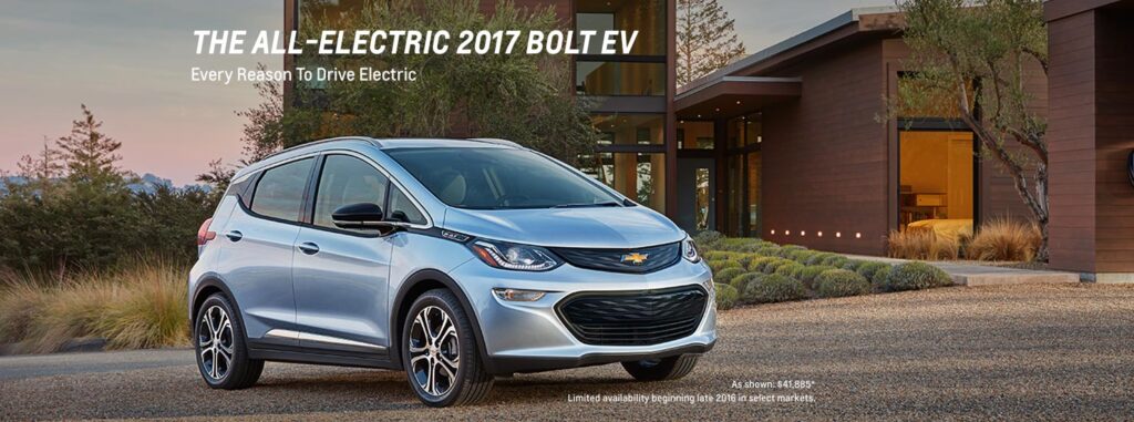 Chevrolet  BoltEV මෝටර් රථය ,Tesla සමාගමේ 2017 වර්ෂයේදී වෙළඳපොළට නිකුත් කිරීමට බලාපොරොත්තු වන model 3 රථය හා තරඟ  කිරීමට නිපැයූ මෝටර් රථයකි. Hatchback  ආකාරයේ මෝටර් රථයක් වන මෙය ආසන 4 කින් සමන්විතවේ.nickel ලෝහයෙන් සමන්විත lithium-ion battery තාක්ෂණය මෙම මෝටර් රථයට පන පොවයි.අදික සීතලට හා උණුසුමට ඔරොත්තු දෙන  60KWh battery pack එකකින් සමන්විත වේ.DC Fast Charging පහසු කම මගින්  විනඩි 30 ක් ආරෝපනය කිරීමෙන් කිලෝමීටර 145ක පමණ දුර ප්‍රමාණයක් ධාවනය කිරීමට  හැකිය.ඇමරිකාවේ EPA(Environmental Protection Agency ) ඇස්තමේන්තුවට අනුව  මෙම  මෝටර් රථය එක් වරක් ආරෝපනය කල විට  380Km පමණ ධාවනය කළ හැකි බවය.පැයට කිලෝමීටර 149 ක  උපරිම වේගයකින්  මෙම රථයට ගමන් කළ හැකිය.