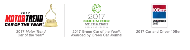 මෙම මෝටර්  රථයට 2017  motor trend car of the year,2017 Green car of the year,2017 car and drive 10Best යන සම්මාන ලබාදී ඇත.